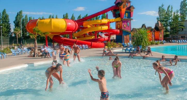 Der Campingplatz verfügt über ein beheiztes Wassersportzentrum mit einem 500 m2 großen Schwimmbecken, der berühmten Spacebowl-Rutsche für ältere Kinder (Mindesthöhe 1,2 m), 2 Rutschen und einem Kinderbecken mit einer Cobra-Rutsche und einer Elefantenrutsche nur für sie!