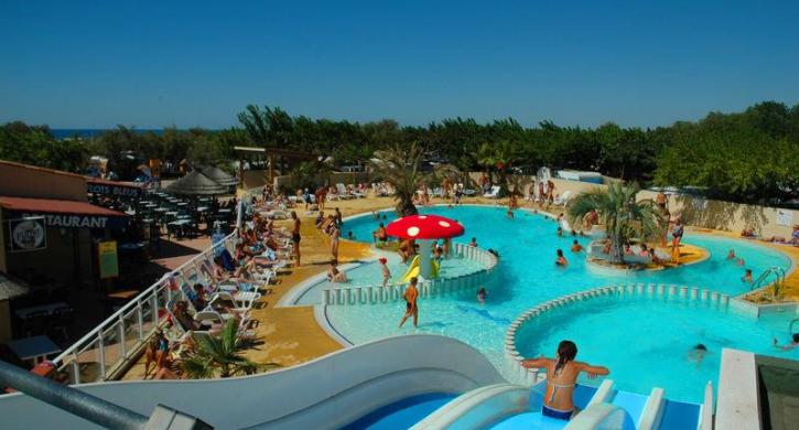 Im Herzen des Mittelmeers, am Fuße der Sandstrände, bietet der Campingplatz Flots Bleus die Vermietung von Mobilheimen, Chalets und Stellplätzen an.