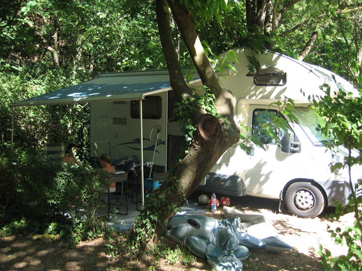 | Unterkunft: | Die Stellplätze sind zwischen 80 m² und 150 m², alle eben, gut beschattet und durch grüne Hecken getrennt, um für Privatsphäre zu sorgen. Wir akzeptieren maximal sechs Personen pro Platz.  Der Stellplatz hat einen Wasserhahn mit Trinkwasser und einen 10A französischen Stromanschluss. * Mobilheim Komfort (max 6 Personen) 2018 |